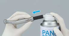 Es una buena costumbre lubricar las turbinas dos veces al día, tras la sesiones de la mañana y al finalizar el día. Además, en caso de que utilice una turbina continuamente durante más de media hora, es muy recomendable realizar una lubricación durante el tratamiento. Utilice un pack de absorción para evitar que el lubricante pulverizado pase al aire.