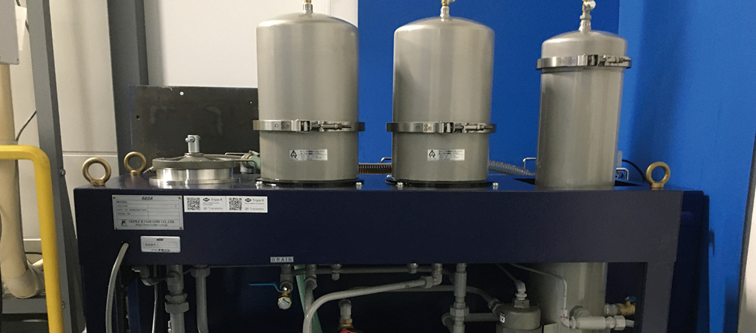 NSK se esfuerza proactivamente por reducir la cantidad de aceite residual vertido. Gran parte del aceite residual es aceite de corte utilizado durante el procesamiento de metales, y se vierte desde la Fábrica A1 dedicada al mecanizado de metales. El aceite de corte que se adhiere a las virutas de metal producidas durante el procesamiento y la neblina de aceite en el aire del interior de la fábrica son recogidos por un "colector de polvo eléctrico industrial de interior (colector de neblina de aceite)" instalado en el techo. A continuación, el aceite se recicla a través de un sistema de filtración de precisión. La recogida del aceite suspendido en el aire mediante un colector de neblina de aceite reduce la acumulación de aceite en las paredes, manteniendo limpio el entorno de trabajo.